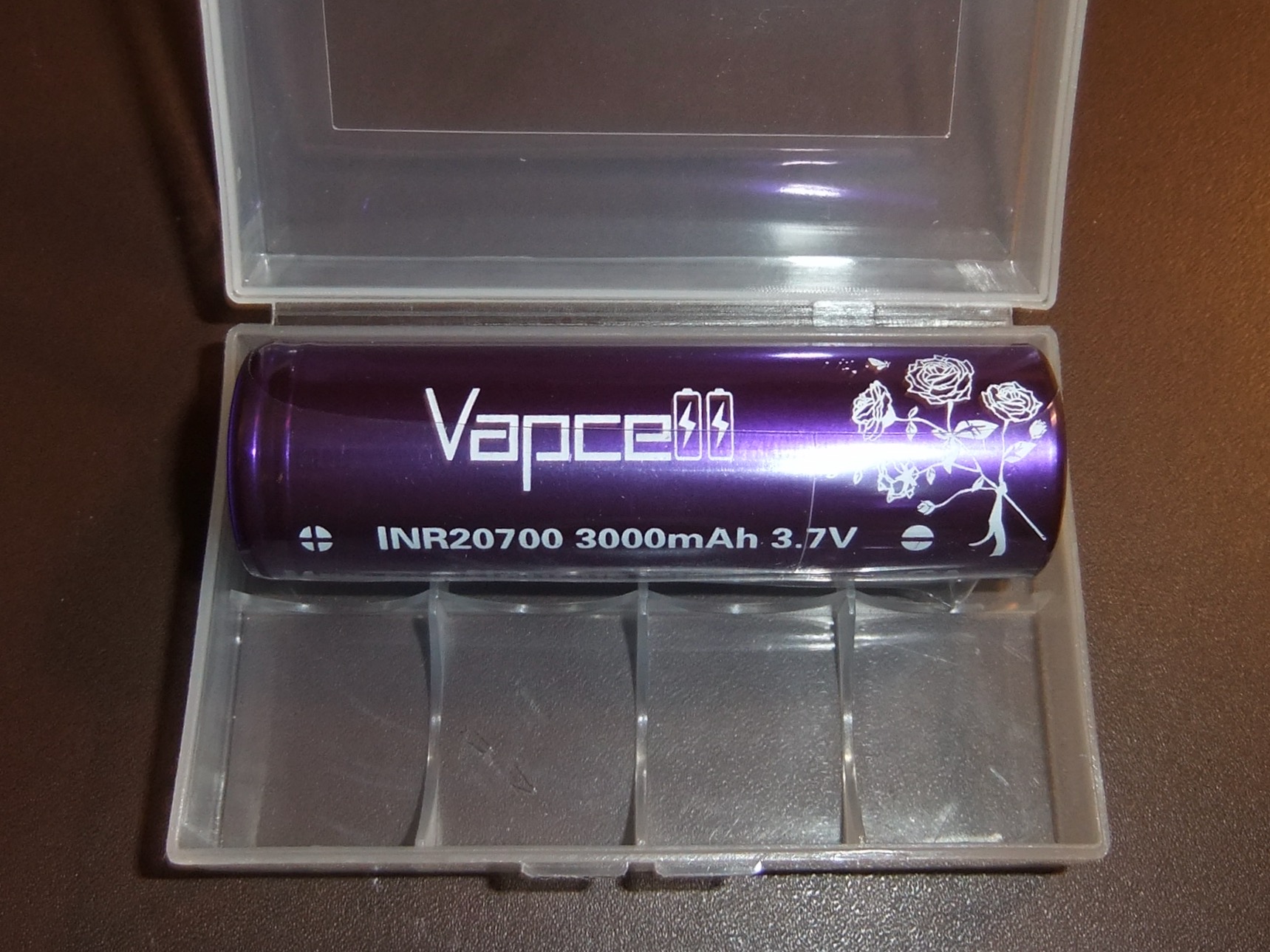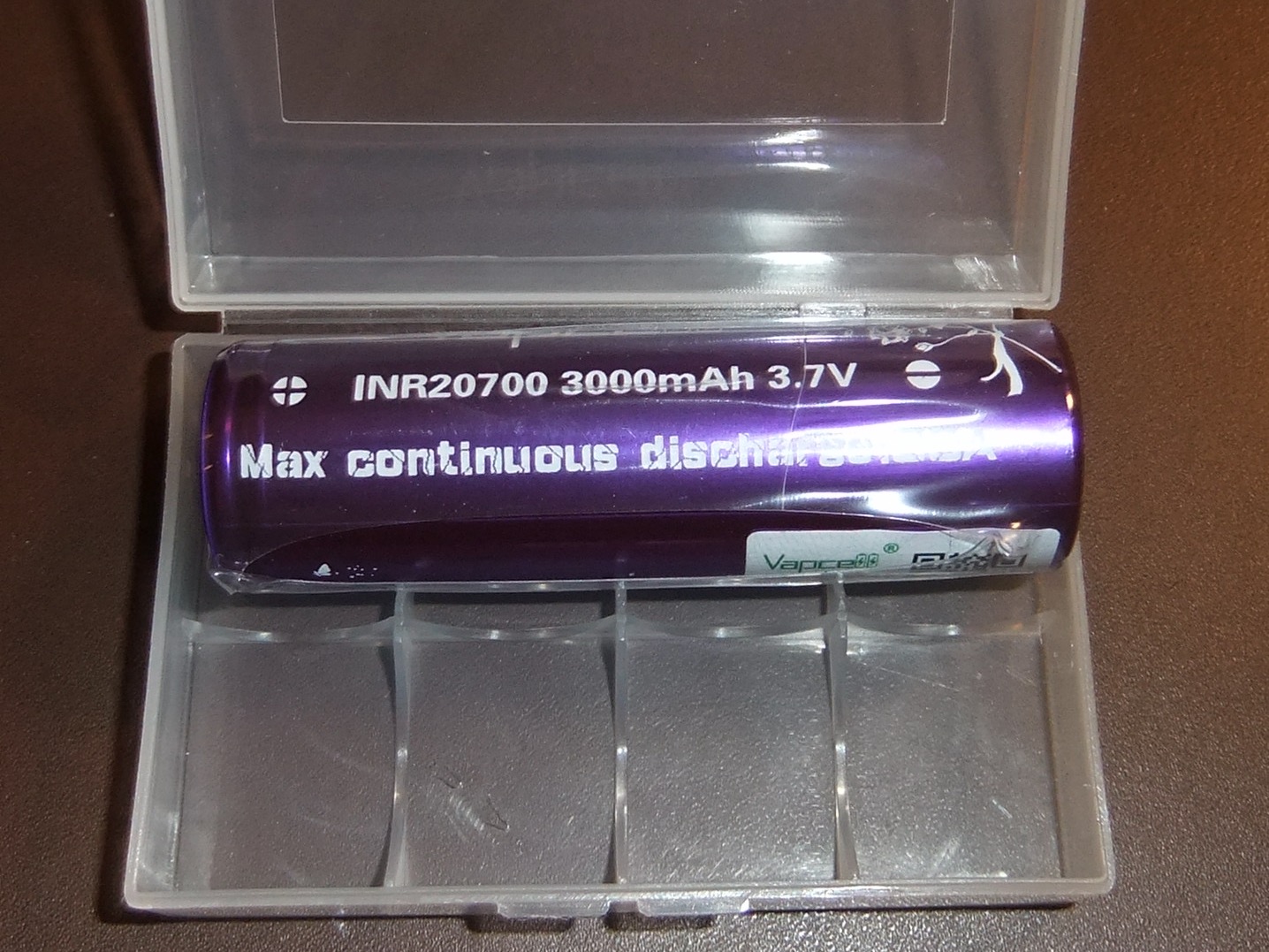 1 x Vapcell 3000mAh 20700 battery in a plastic protective case.