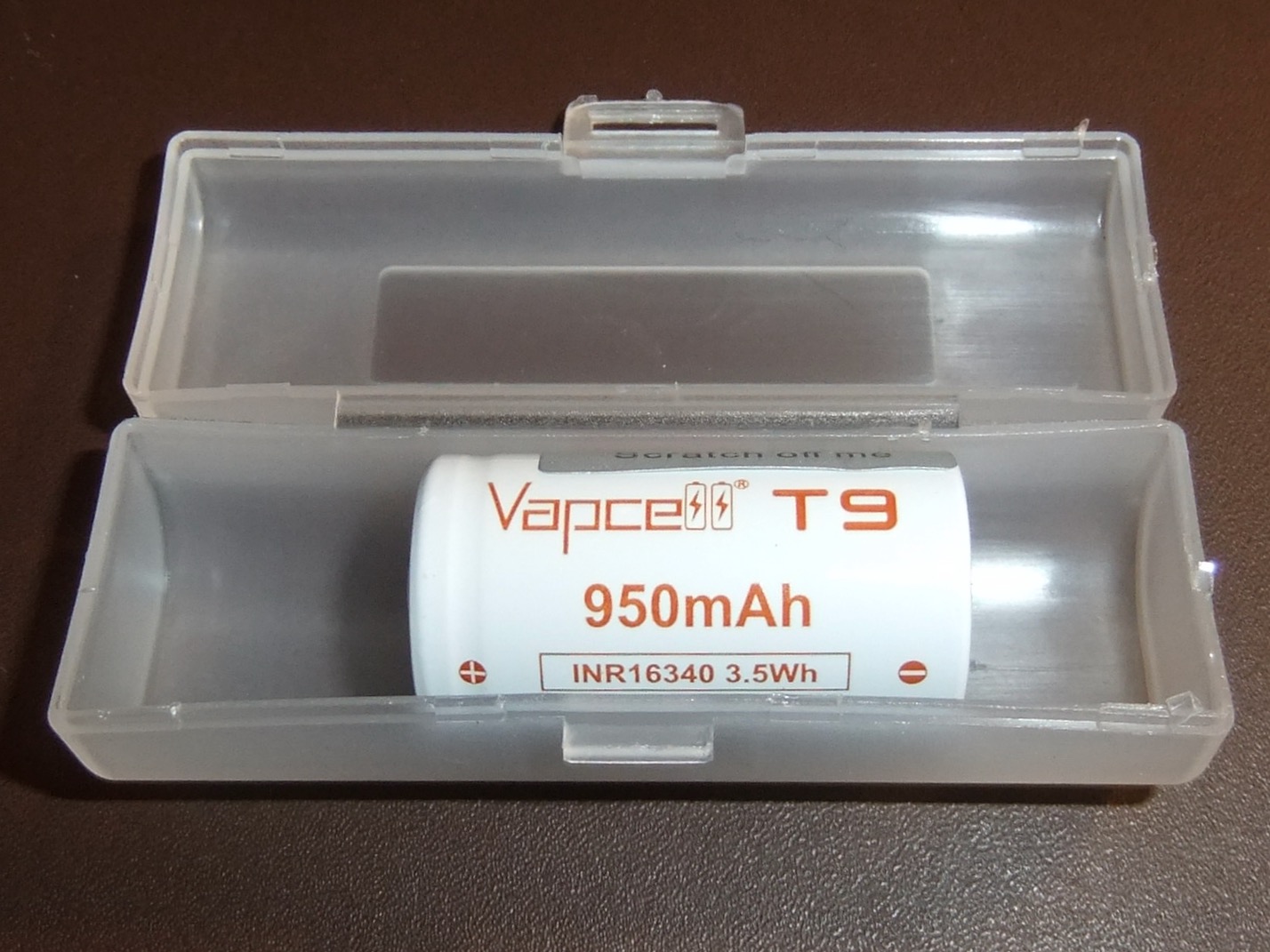 1x Vapcell brand 950 mAh 16340 battery (CR123A / RCR123).