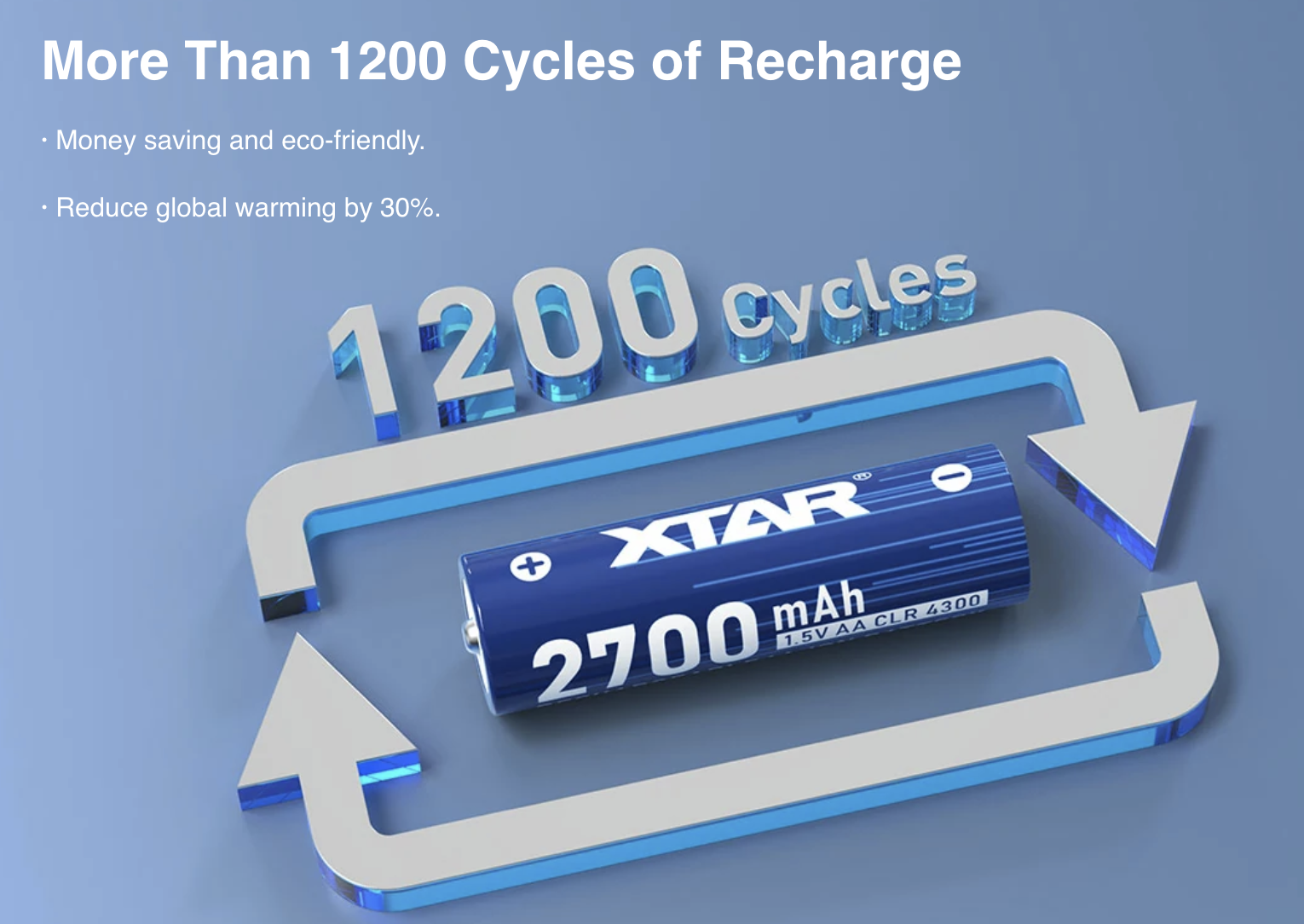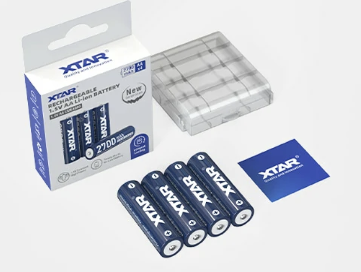4x XTAR AA Lithium-Ion 4300mWh / 2700mAh rechargeable Batteries complete with protective plastic case.
